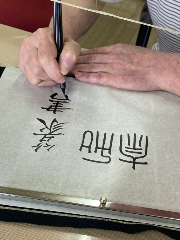 ハンコを作る際の字体を書いていただきました。 ハンコですから反対文字をさらさら〜〜っと書き上げる 技はやはり卓越した職人さんならでは。