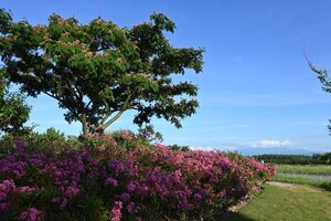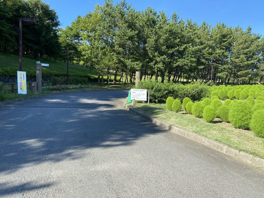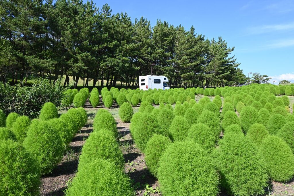 駐車場、その周辺のピクニックエリアまでは誰でも入ることができます。ゲートには近年、コキアが植えられていて話題になっています。秋には真っ赤に色づきます。