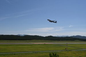キャンプ場前の駐車場南側の丘は見晴らしがいいので飛行機を見に来る人も結構います。