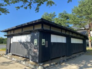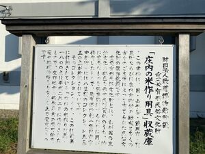 庄内の米作り用具の収蔵庫がすぐそばにあります。致道博物館さんの所蔵の保存施設となっています。こちらは普段は一般開放されていません。