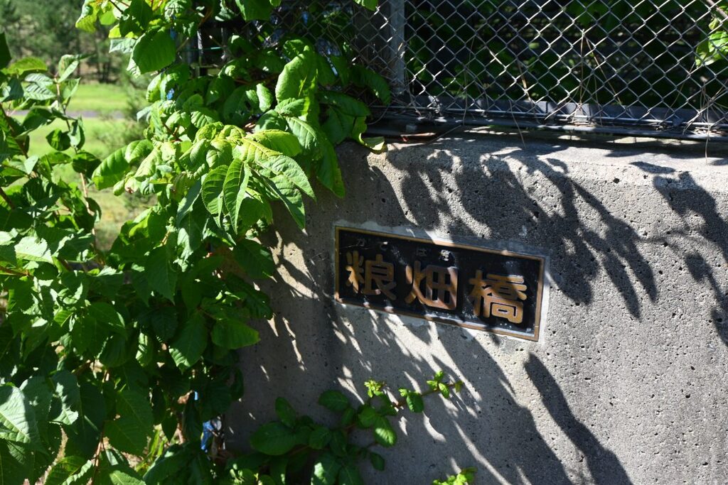 高速道路を渡る橋は「粮畑(かてはた)橋」と書いてありました。