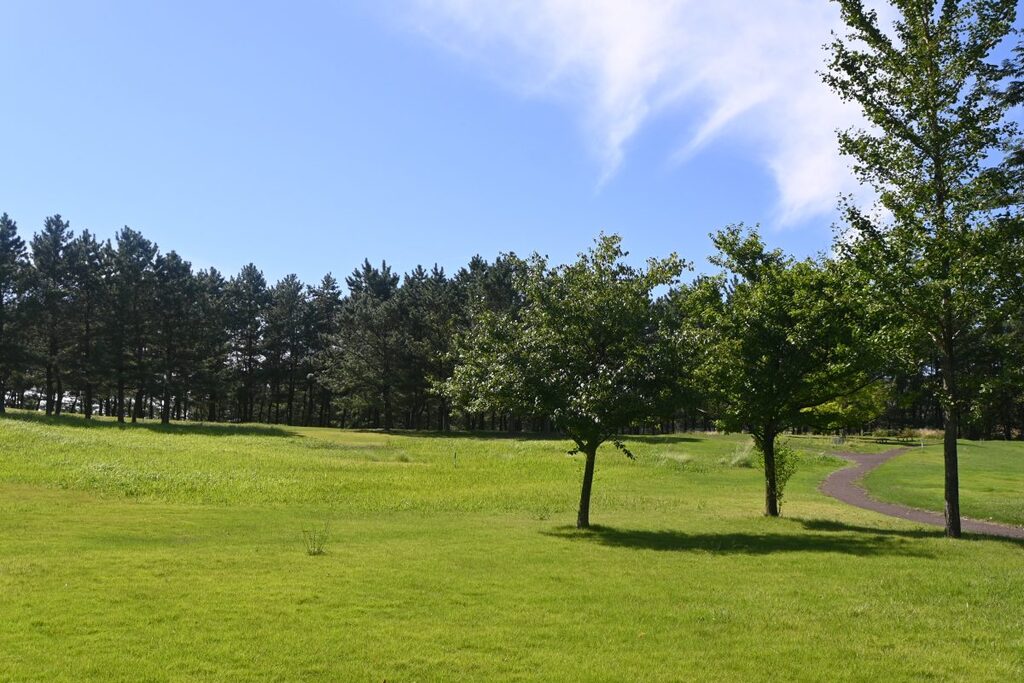 パークセンターのところの芝生広場から歩いて行けるようになっています。