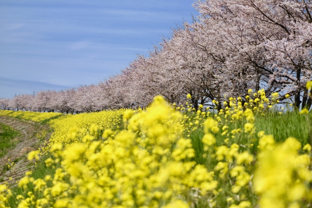 桜と菜の花のハーモニーが楽しめます。