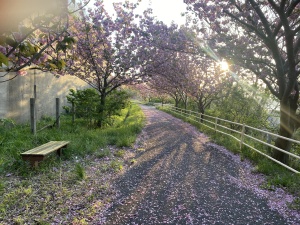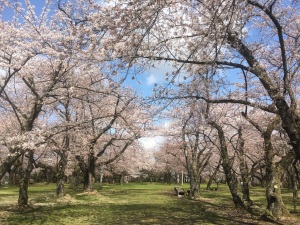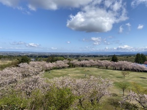 眺海の森全体、いろんな場所にソメイヨシノやしだれ桜、山桜など咲くので
