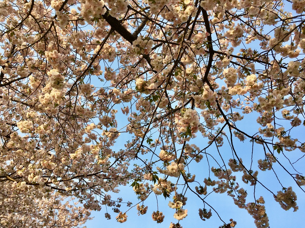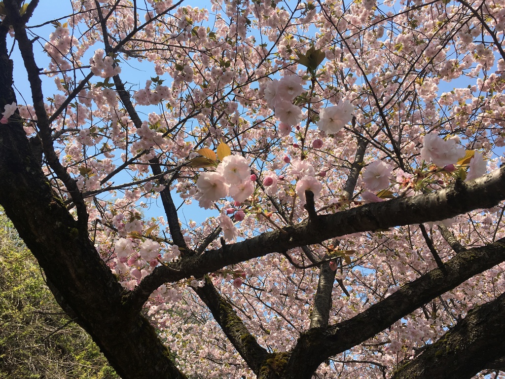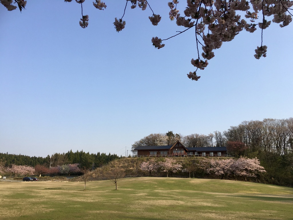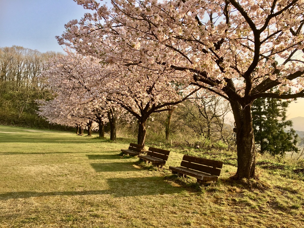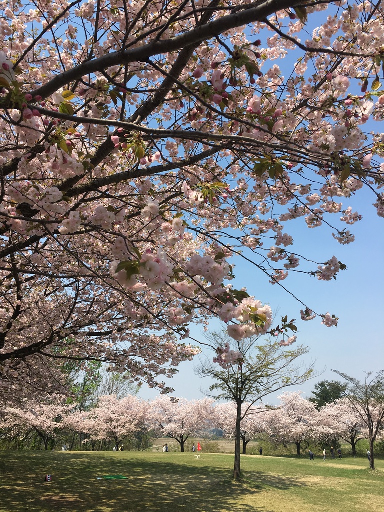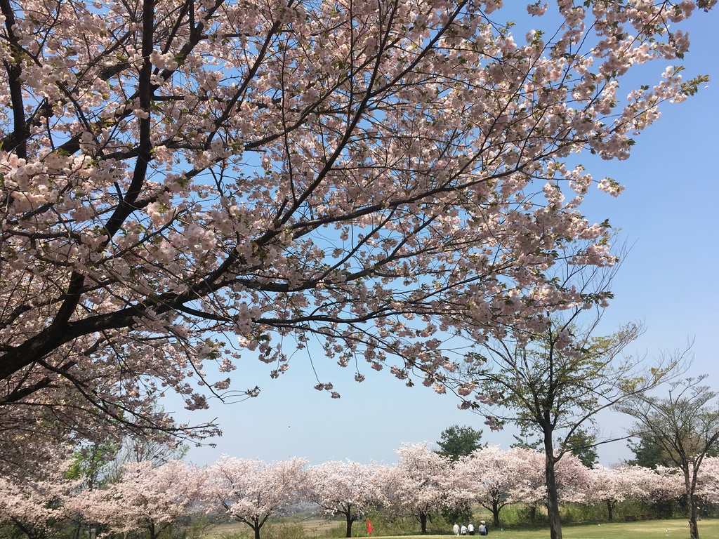 創造の森は八重桜の時期、とてもきれいで、グランドゴルフをする人や