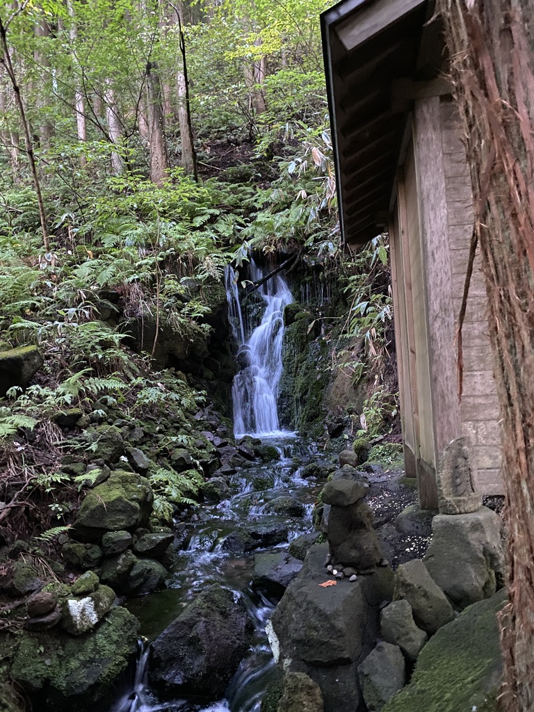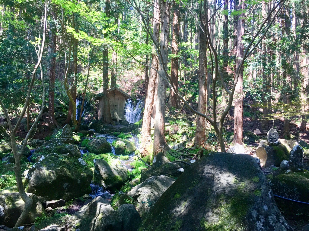 Feel the power of spring out water from Mt.Chokai. A spiritual small shrine between flows of the waterfall is built on the rock through aged cedar forest and several old Buddhist stone figures.