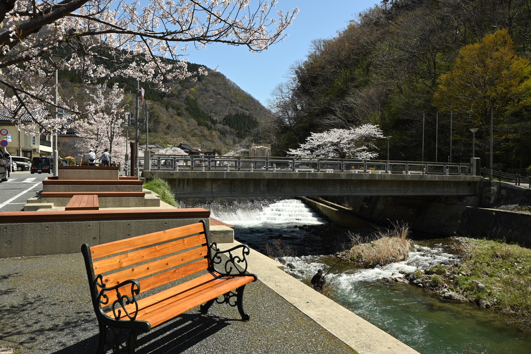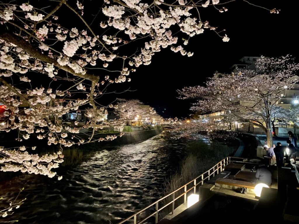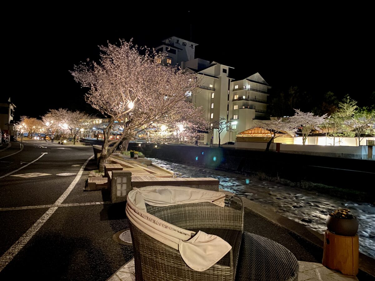 桜の開花時期に合わせ、温海川河畔の桜をライトアップ。