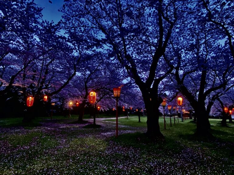 会場となる楯山公園は、庄内平野を一望できる高台に位置し、約200本のソメイヨシノが咲き誇る桜の名所です。