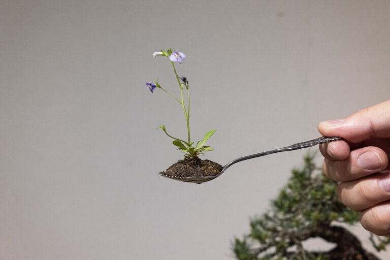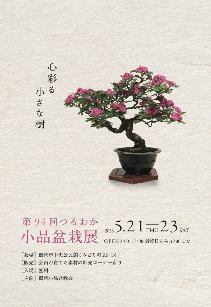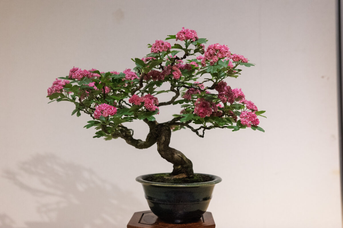 樹の高さが20cm以内の小品(しょうひん)と呼ばれる大きさの松や、花や実がなる盆栽を約100点展示します。来場者の皆様には、小さな春の風情を楽しんでいただければ幸いです。