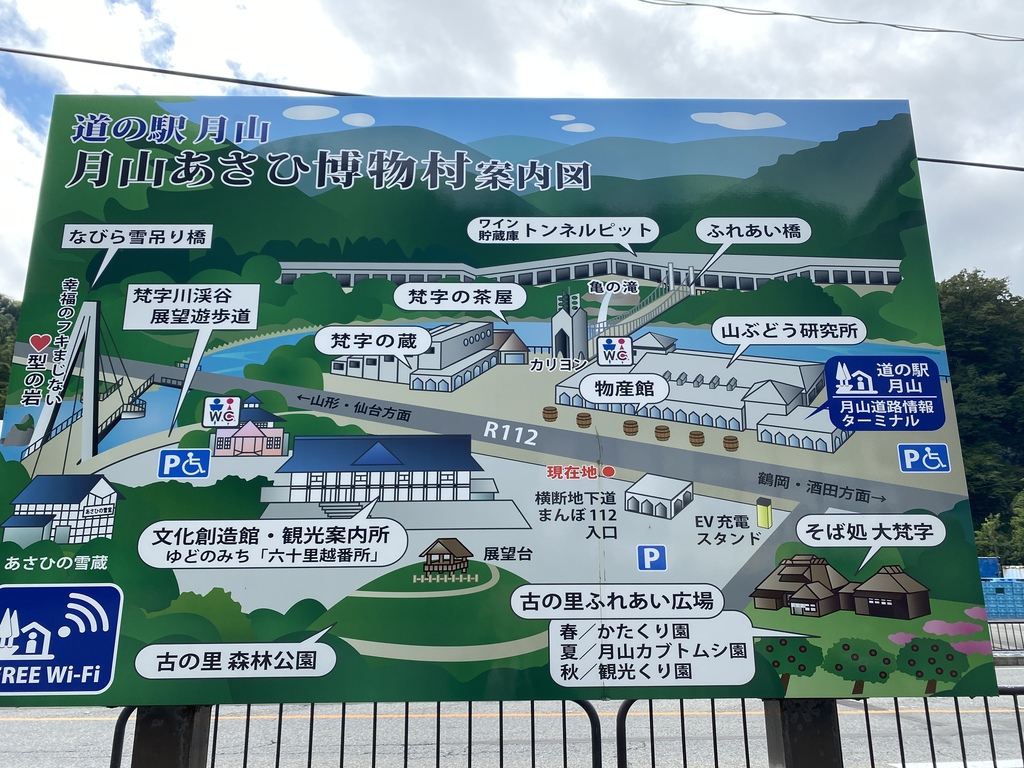 道の駅「月山」の案内図。