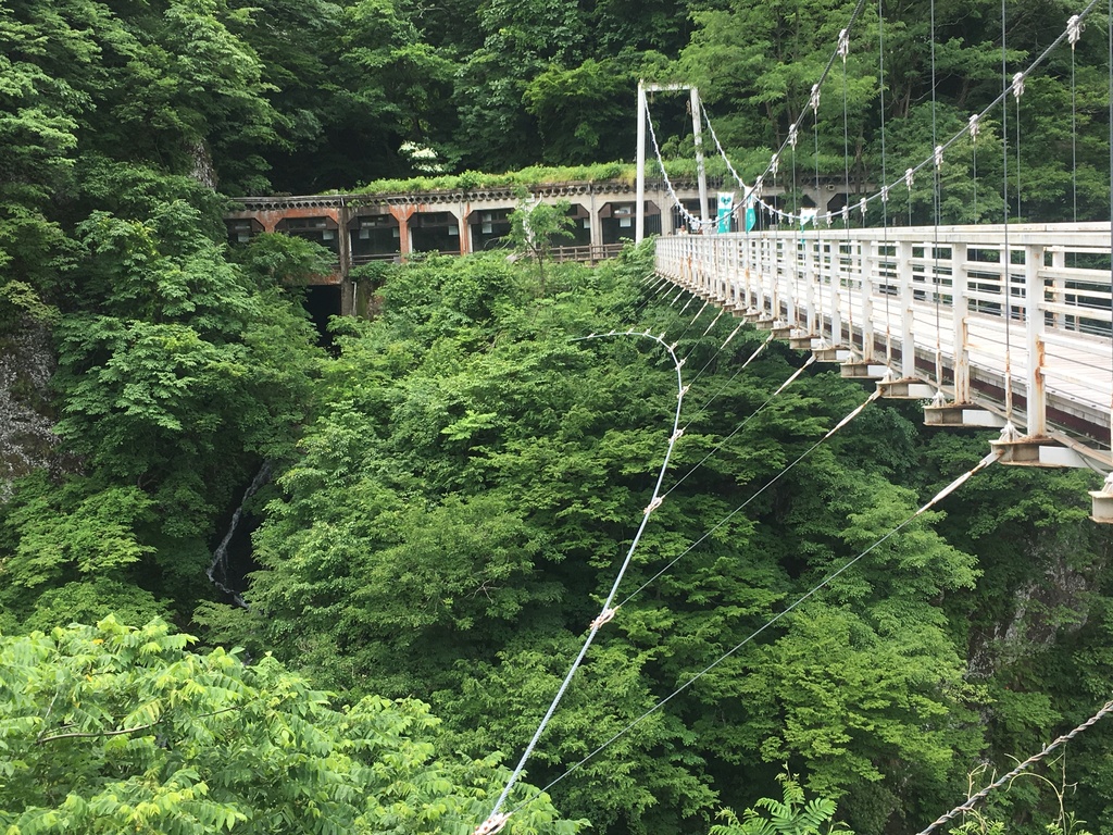 月山ワインの貯蔵庫にかかるふれあい橋という吊り橋から見ることができる。