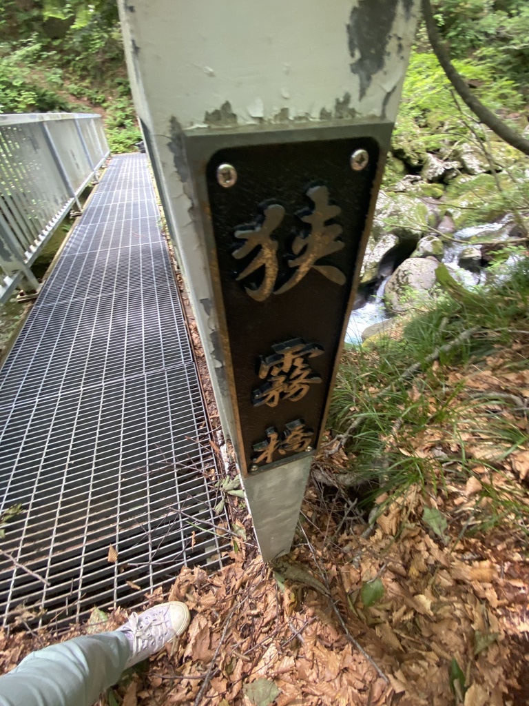 個人差もありますが、30分ほどで狭霧橋と名のついた金属製の頑丈な滝見橋につきます。