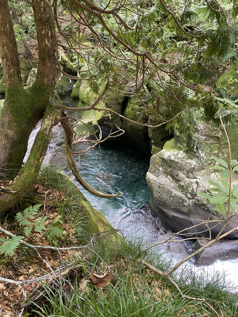 狭霧橋の下のあたり。エメラルドグリーンの水が見られます。
