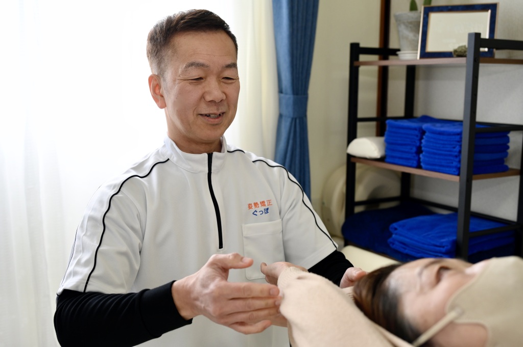 姿勢矯正ぐっぽさんで施術をしてもらいました。 姿勢矯正は痛いイメージがありましたが、特に痛く無く 帰る時には身体がとても軽く楽になり、ホームケアの方法も教えてもらえて大満足でした。