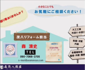 住まいの困りごとがあったら大判焼きを買いながら、気軽に相談に行ってみてください(笑)定期的に発行している「茂八通信」には森社長のおもしろコラムを掲載しています。密かにファンが多いとか。茂八喫茶に置いていますのでぜひご覧ください。