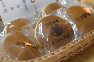 材料はもちろん最高級の上質なあんこと粉を木下製餡さんから仕入れていますので間違いのない味。お土産に持っていけるように謝罪用、感謝用のコメントを焼印でつけました。一回買って終わりでなくリピートするようにとの工夫です。また鶴岡のお土産として魅力があるように、コメントを「庄内弁」で入れ、大正期の鶴岡の地図をパッケージデザインに採用。(弊社で森さんご夫妻と一緒に制作させていただきました)