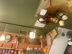 まち歩きをするときにどんな店があったらうれしいか、それを旅行者目線で考えて実現してくれているように思いました。待ち時間も和雑貨やレトロ雑貨があって全く退屈しません。リフォーム屋さんのお店なので、天井や壁にもあちこちに仕掛けが(笑)