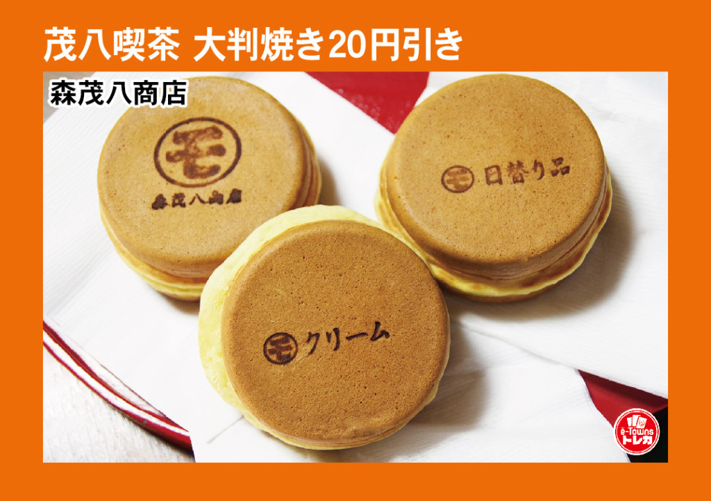 森茂八商店さんの大判焼がとても美味しいです。 モチモチの生地に、ボリュームのある大きさで食べ応えもあります。日替わり商品もあるので今日は何だろうとワクワクします。