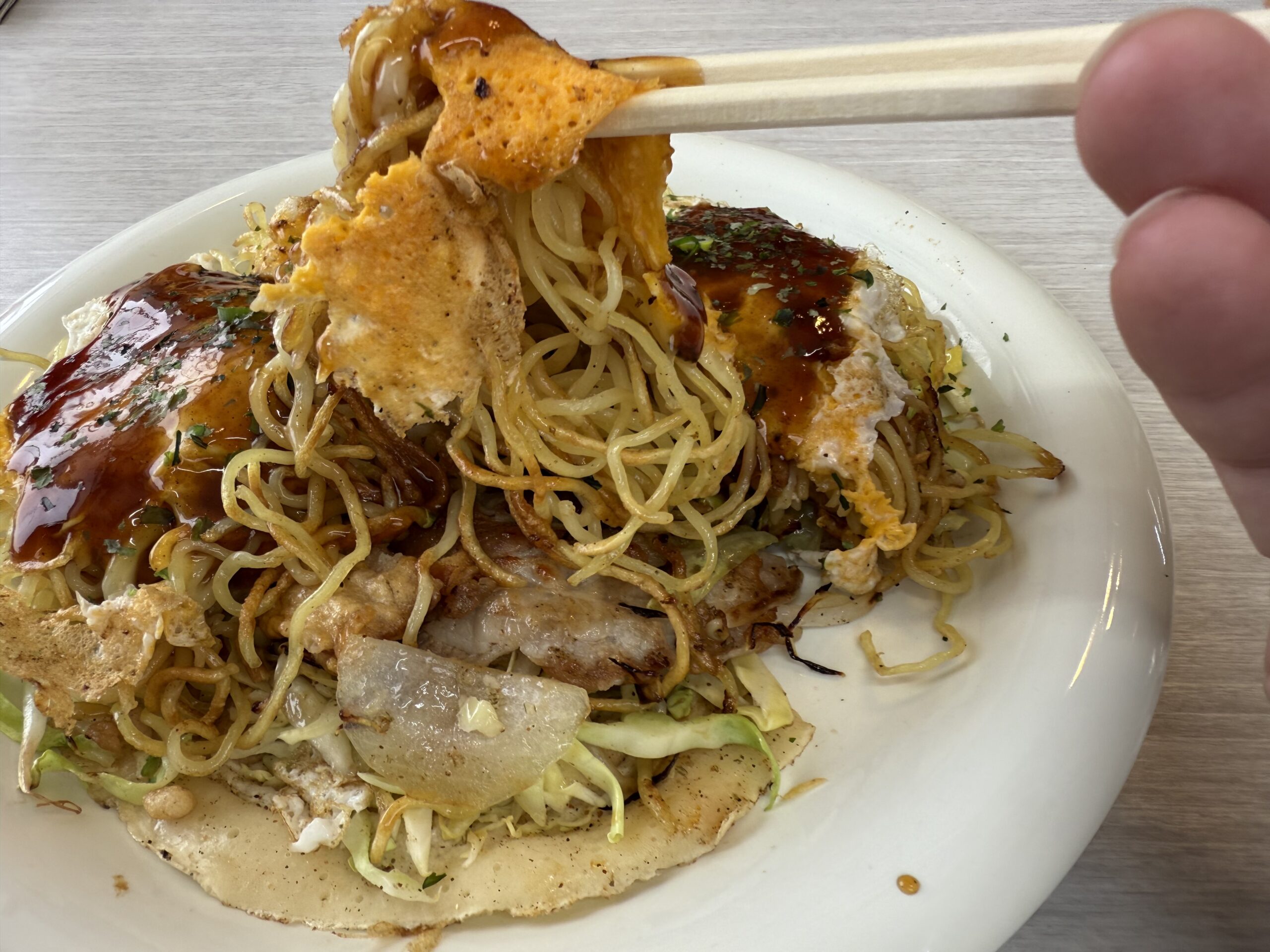 小さい頃に家で作っていたとはいえ、お客様に提供するのは初めてのことだったので、オープン前にオタフクソース(お好み焼きソースの会社)で開店前研修に通った。その時にキャベツは「押さえつけないことと」指導されたが、家の作り方はぎゅっと押さえつけるやり方だったので、今でも家の作り方でやっている。「こっちの方が絶対にうまい」と橋本さんは語る。