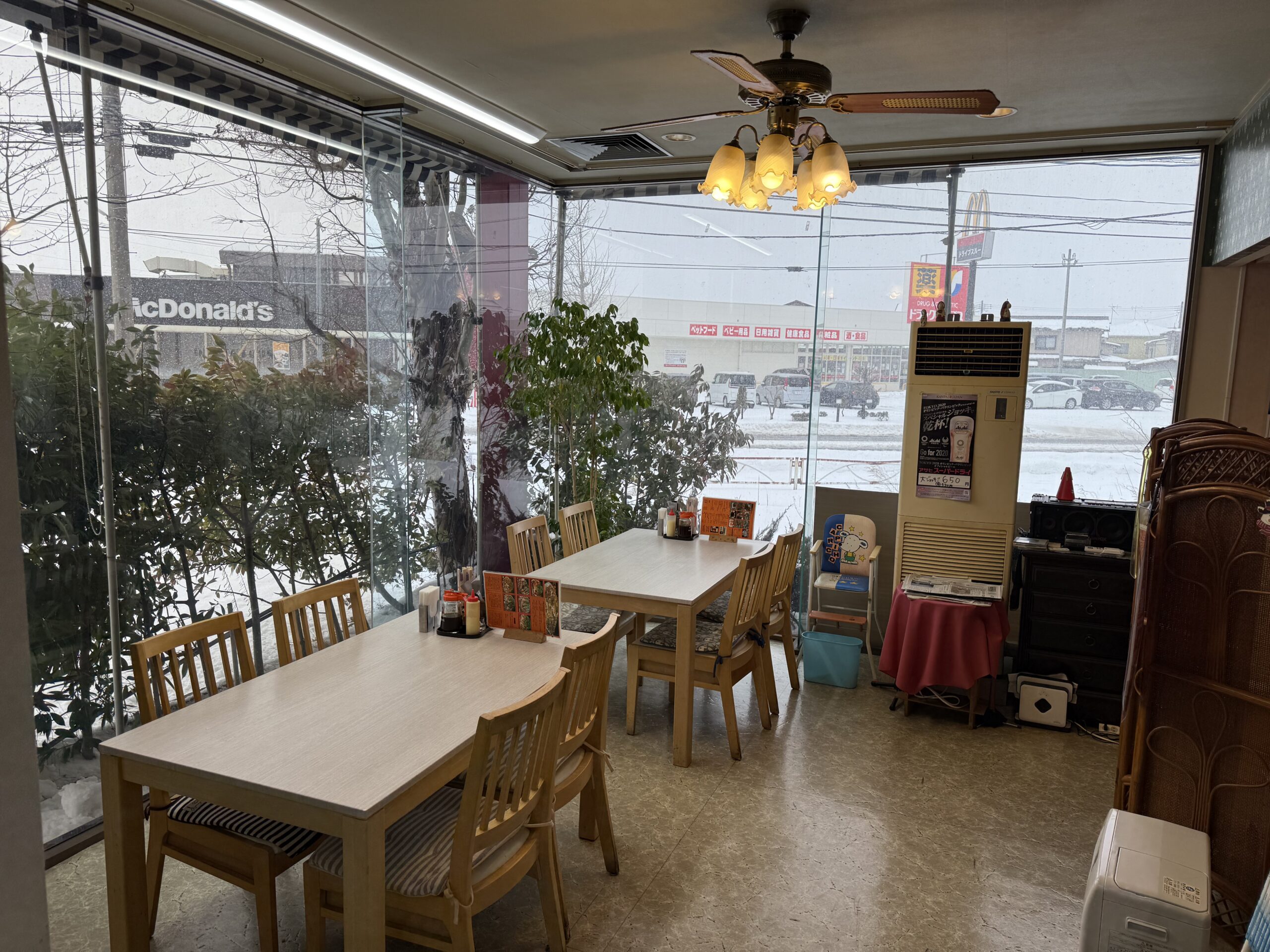 ショールームを改装したとのことで、窓が大きく開放的な店内では、車が行き交う鶴岡の街並みを見ながらゆっくりと食事ができます。