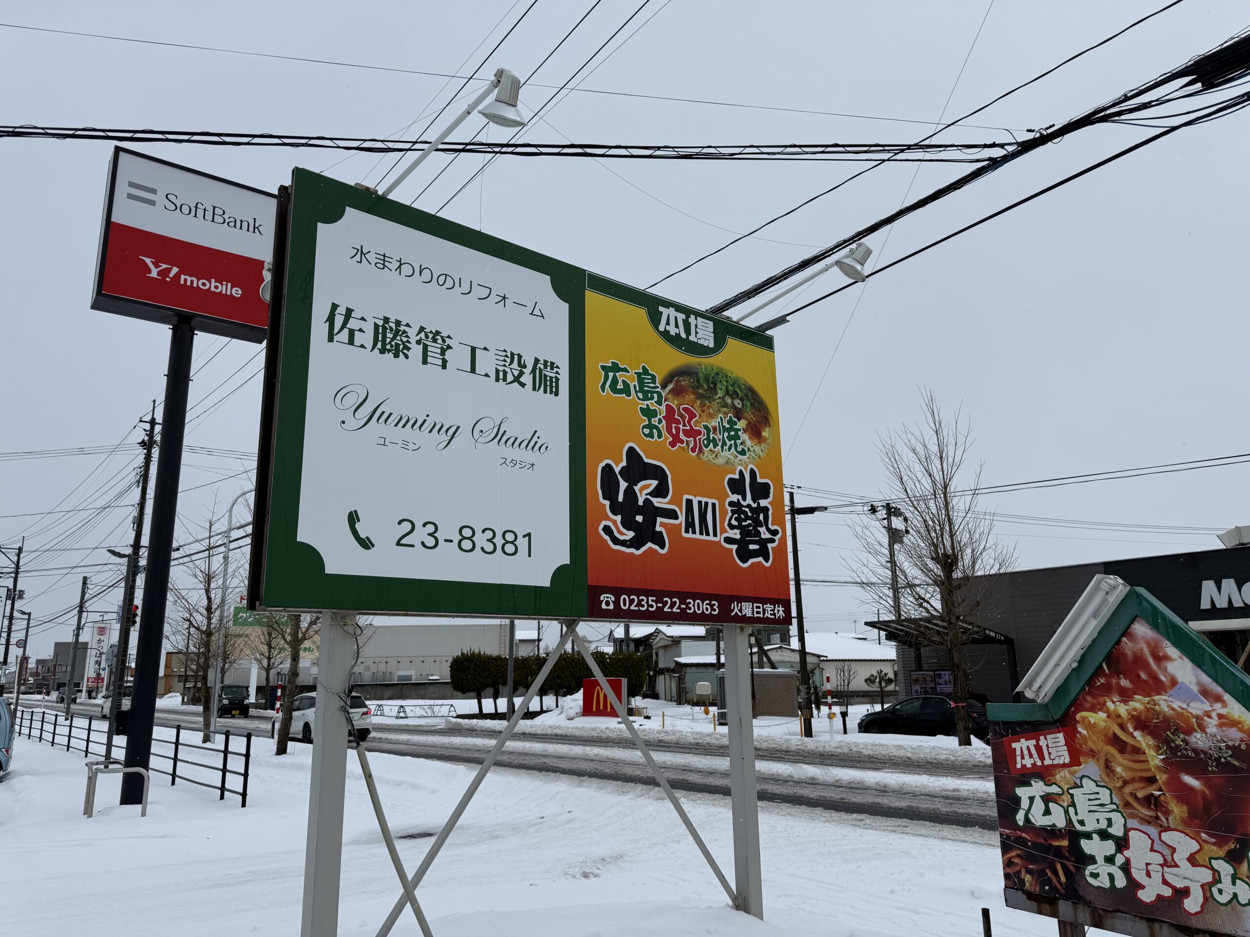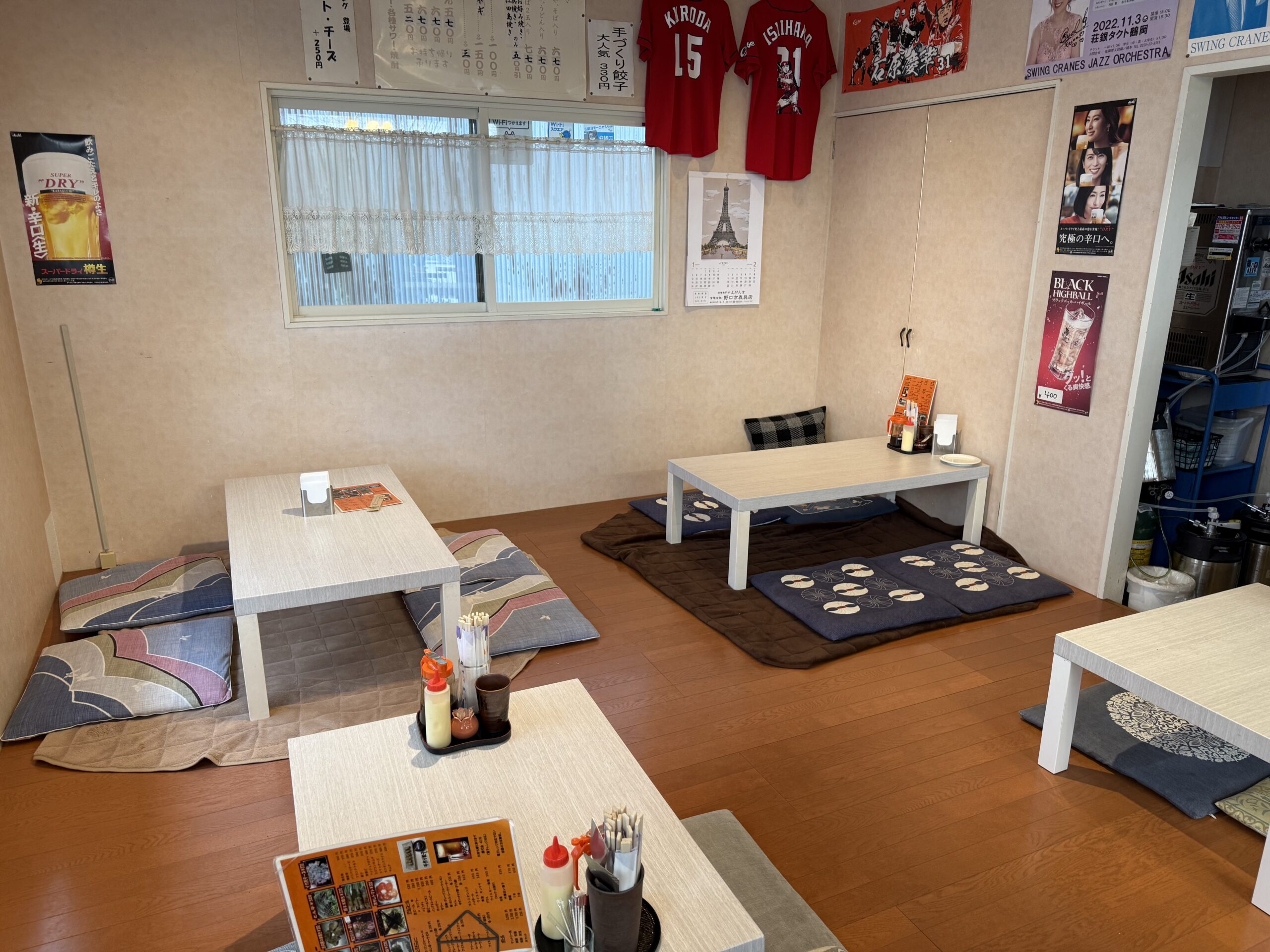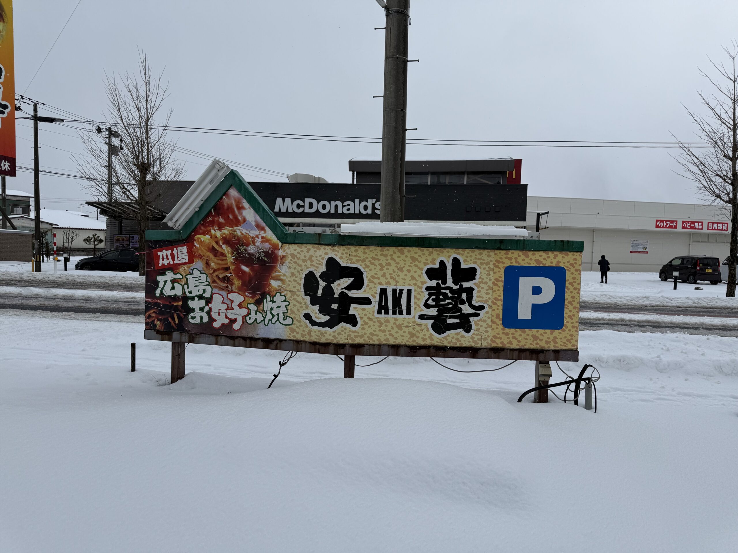 鶴岡市東新斎町のIZUMO前に大きな看板がある、広島風お好み焼き専門店。薄皮のそば入りが特徴。鉄板焼きのサイドメニューも豊富で、食事だけはもちろん、ビールと一緒にも最高。ファミリーが使いやすい座敷の席もある。