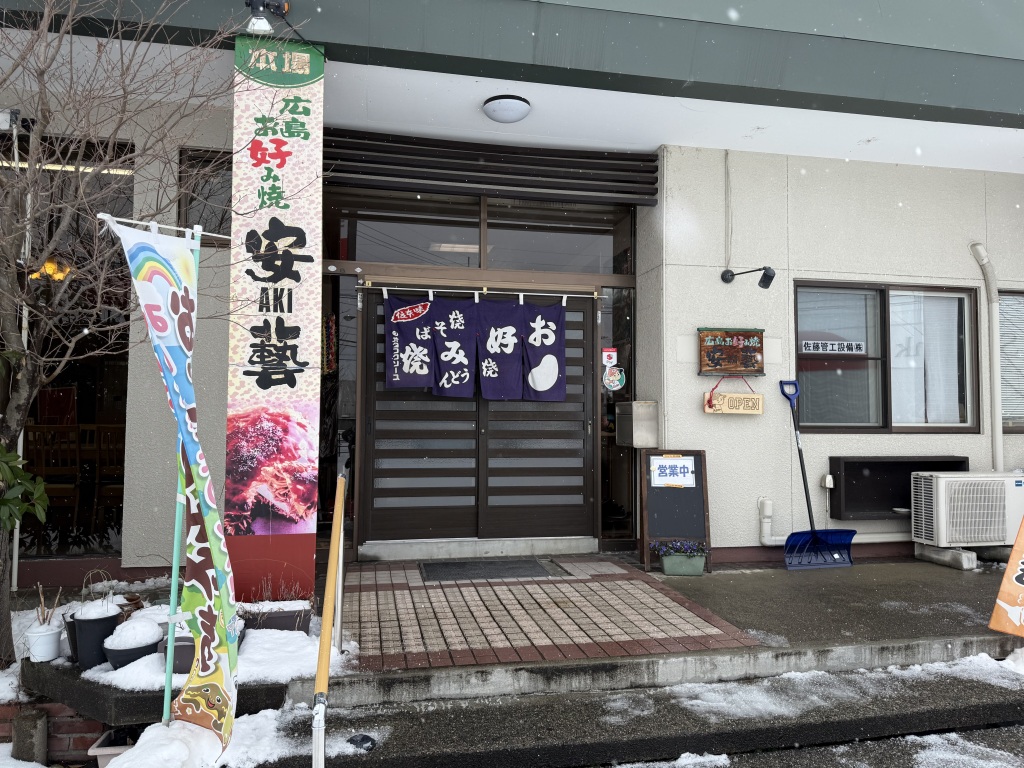 結婚して鶴岡に来てからは、奥さんの実家の住宅設備工事会社(佐藤管工設備株式会社)で働いていたが、ある時会社の社宅が空くこととなり、「広島風のお好み焼き屋をやってみよう」と思い立った。当時すでに社長となっていたので、二足の草鞋を履く形でのスタートだった。店名は自分の出身地から安藝(あき)とした。