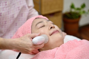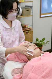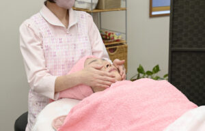 「ゆっくり本格エステ」60分は3,000円(会員さんは2,500円) ハンドによるフェイシャルエステ、美容機器を使用したケアで使用するマスクはお肌に合わせて選びます。
