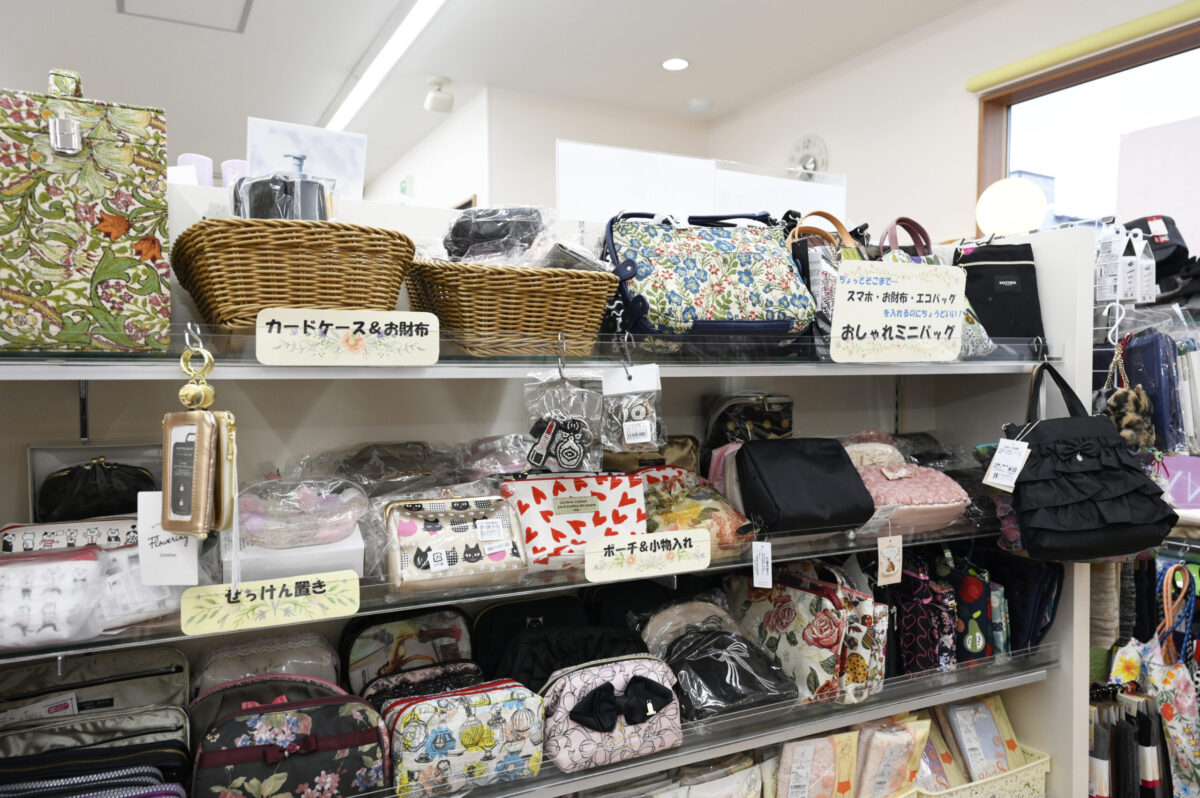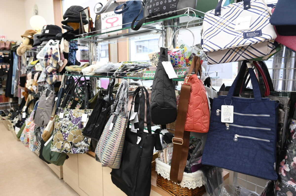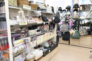 「いきいき・キレイ彩(sai)」ではエトワール海渡さんの女性が好むファッション雑貨を扱っています。エプロンやバッグ、帽子、ポーチ、くつ下ほか、日常遣いで女性の毎日の気分が上がる可愛い、おしゃれを楽しめる雑貨がたくさんあります。薬屋さんにこんなにいっぱい?と思うぐらいの布雑貨、そしてお値段も手頃。ぜひ手にとって見てほしいなと思います。贈り物にもいいです!