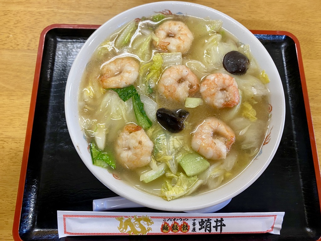 大山の中華屋蛸井さん。皆さん、オム肉チャーハンがおすすめと言いますが、あえて僕は「蝦仁湯麺(シャーレンタンメン)」をおすすめします! 数量限定メニューと記載がありますが、大きなエビが六匹も!たくさん入ってます! 是非、食べてみてください〜、美味しいですよ~