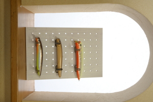 お店をオープンにするにあたってわからないことだらけで大変だったという蛸井さん、趣味で時々気晴らしにしている釣りの仲間にも助けられているそうです。お店のカウンターにルアーがさりげなく飾られています。