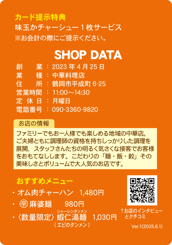 ファミリーでも一人でも楽しめる地域の中華のお店。ご夫婦ともに調理師の資格を持ちしっかりした調理を展開、スタッフさんたちの明るく気さくな接客とともにお客様をもてなします。