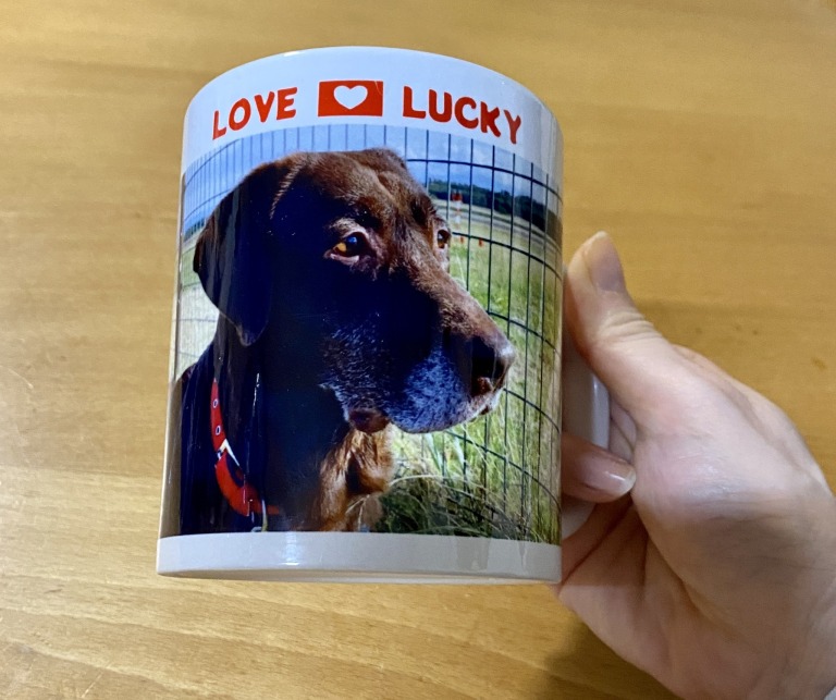 こちらの写真は以前、私が作っていただいた愛犬のマグカップ。