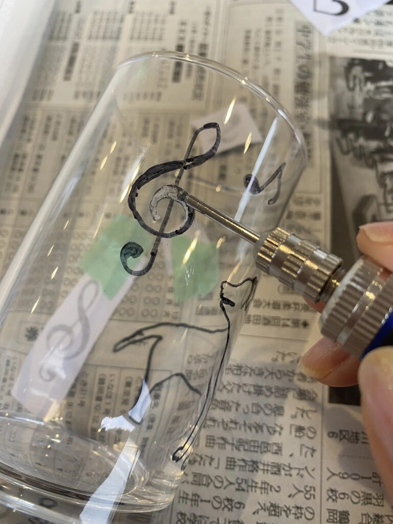 長いガラス製品に彫るとよく合いますね!