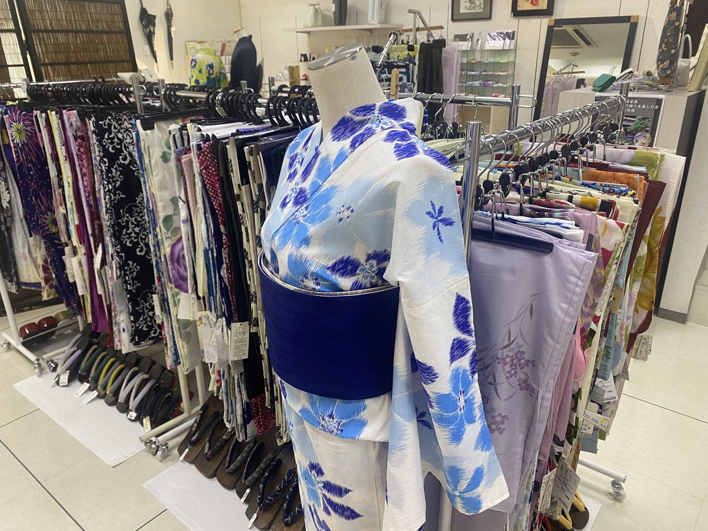 ウインドウにも涼やかなデザインの浴衣が飾ってありました。