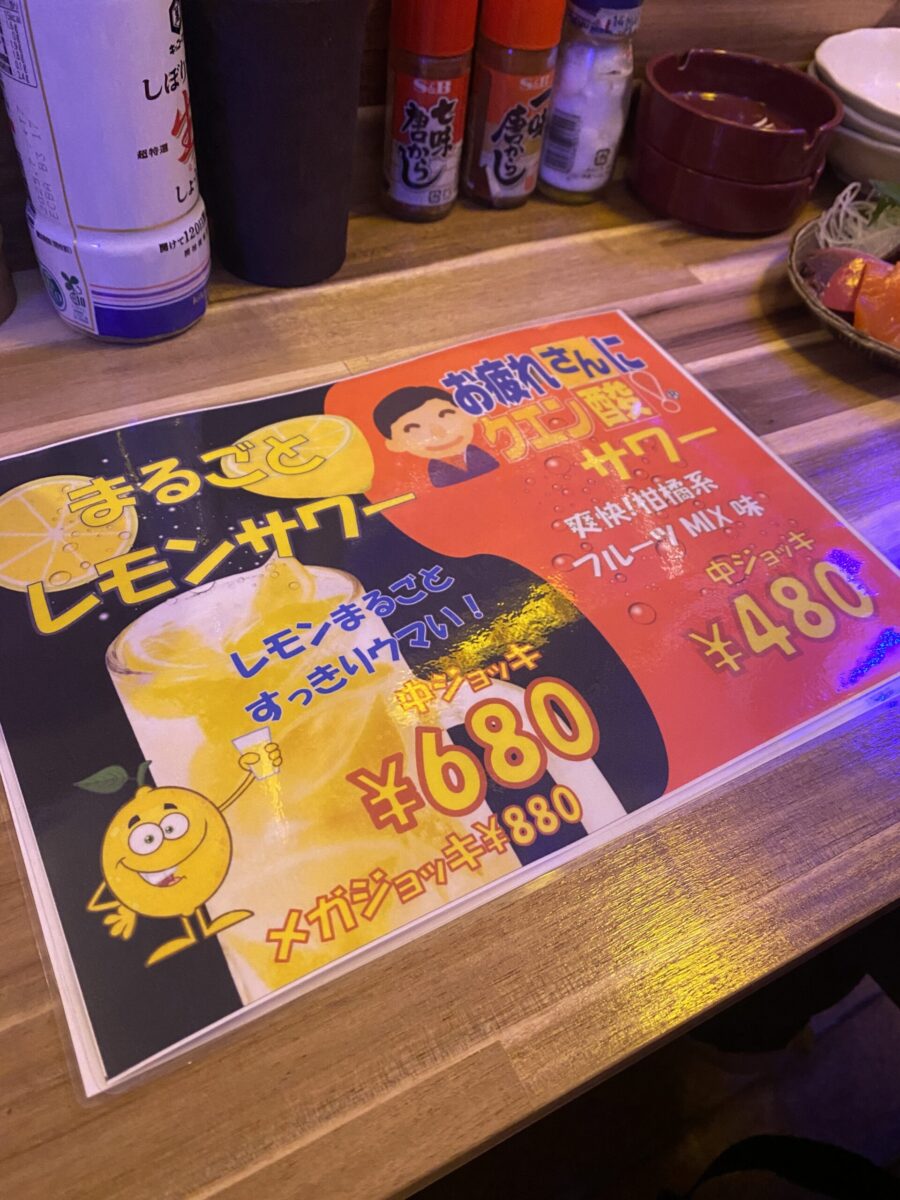 平日の仕事帰りに「お疲れさんにクエン酸サワー」