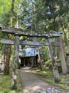 駐車場から滝までの遊歩道、御嶽神社への参道は除雪がなく、前の人が通ったあとをたどって行きました。