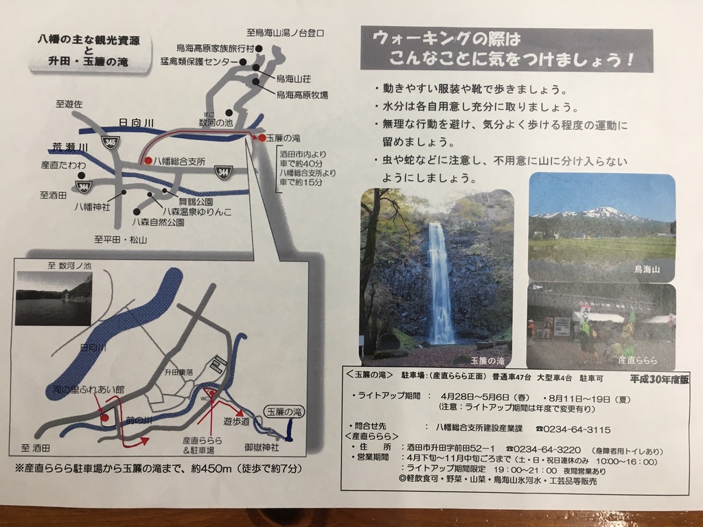行き止まりに滝があります。(滝でいただいたマップをのせておきます。平成30年度版)