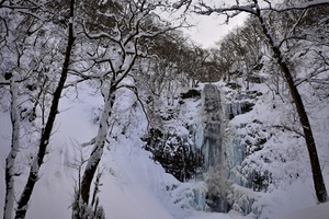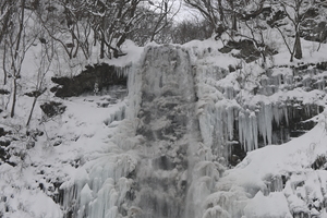 1月から、2月の上旬にかけてみることができるという玉簾の滝の氷瀑。