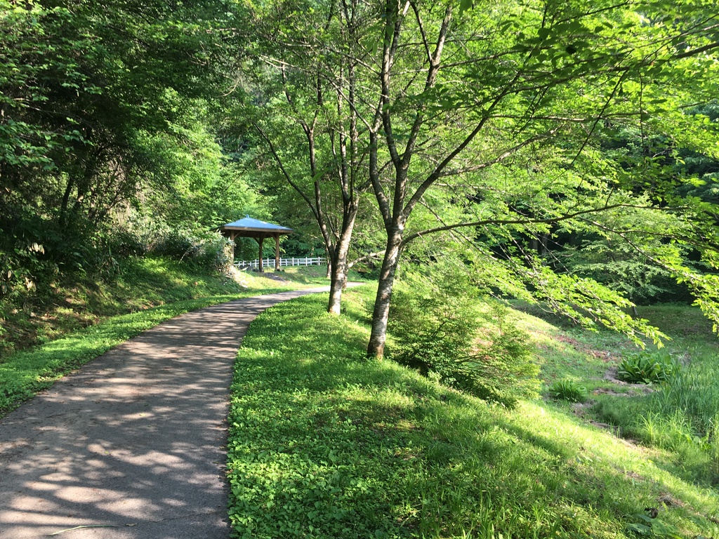 駐車場から約450mの遊歩道を7、8分ほど歩くと