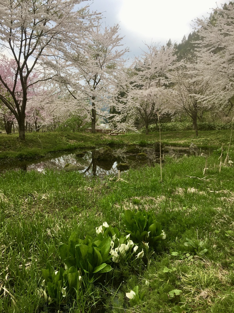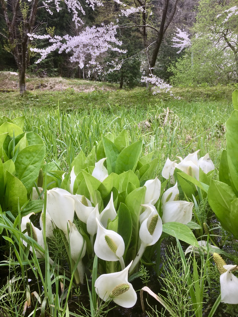 春、湿地には水芭蕉が咲きます。4月下旬〜5月上旬