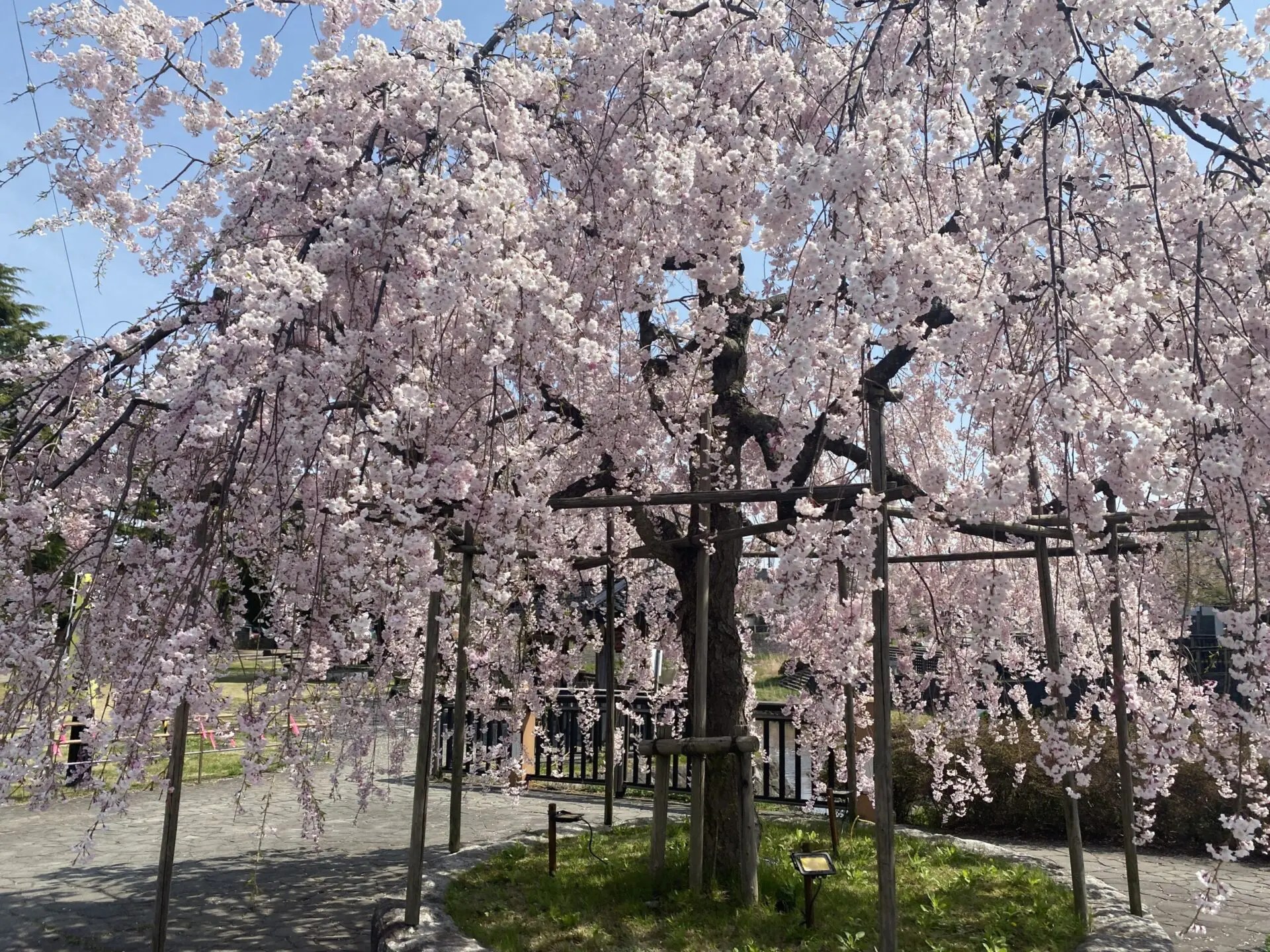 ホットパークには見事な枝垂れ桜が一本あります。見応えあります。