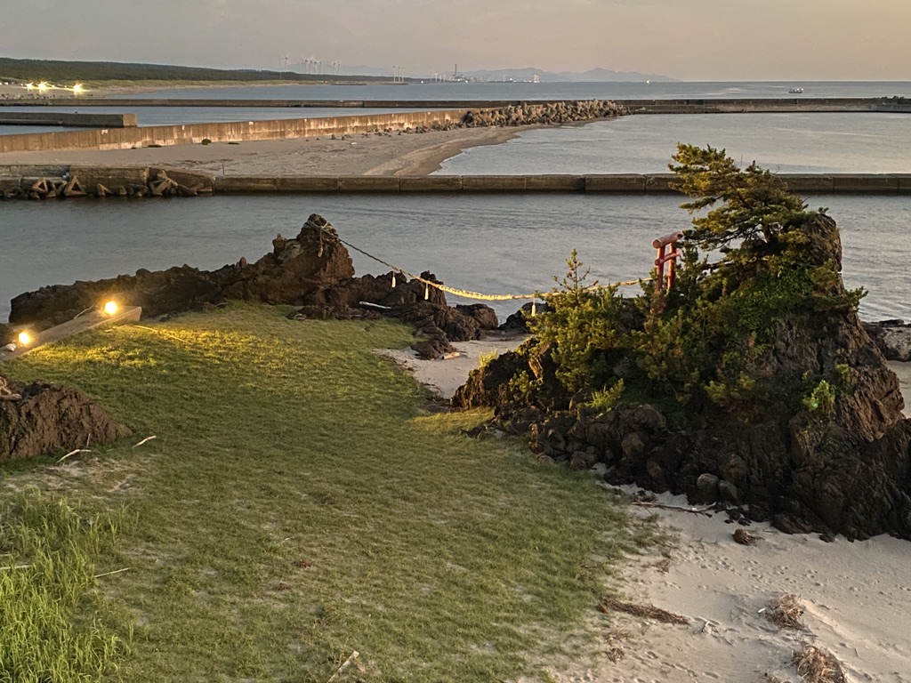 夕暮れ時、花火を待ちながら吹浦の漁港側の海岸を回ってみるのもいいです。